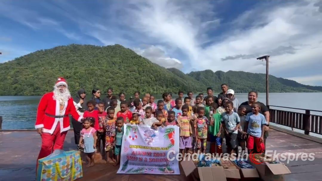 CenderawasihEkspres.Com, Waisai –Alumni SMU Negeri 3 Kota Sorong (SMUNTI Kota Sorong) Angkatan 2000-2003 melakukan kunjungan di Kampung Warsambin, Distrik Teluk Mayalibit, tepatnya di Home Base Ruang Belajar Mayalibit (RBM) Raja Ampat, Sabtu (20/12/2025).