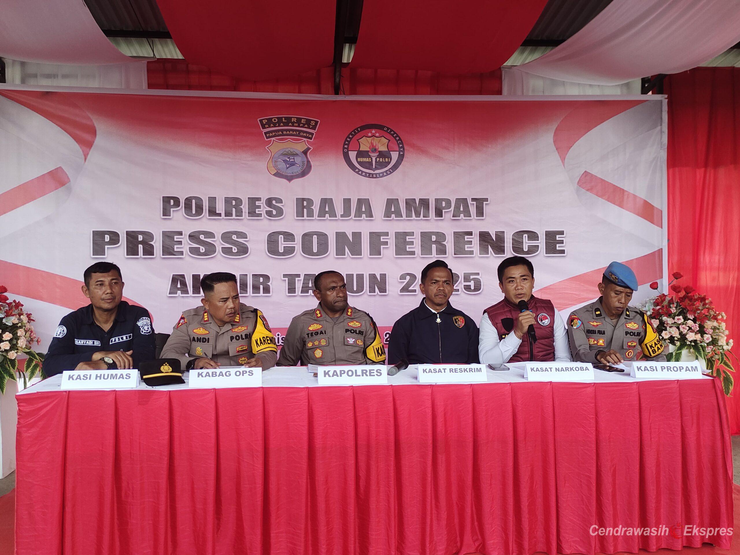 CenderawasihEkspres.Com, Waisai –Polres Raja Ampat,Polda Papua Barat Daya melaksanakan Press release terkait jumlah kasus yang ditangani pihak Polres jelang akhir tahun 2025, Rabu (31/12/2025).
